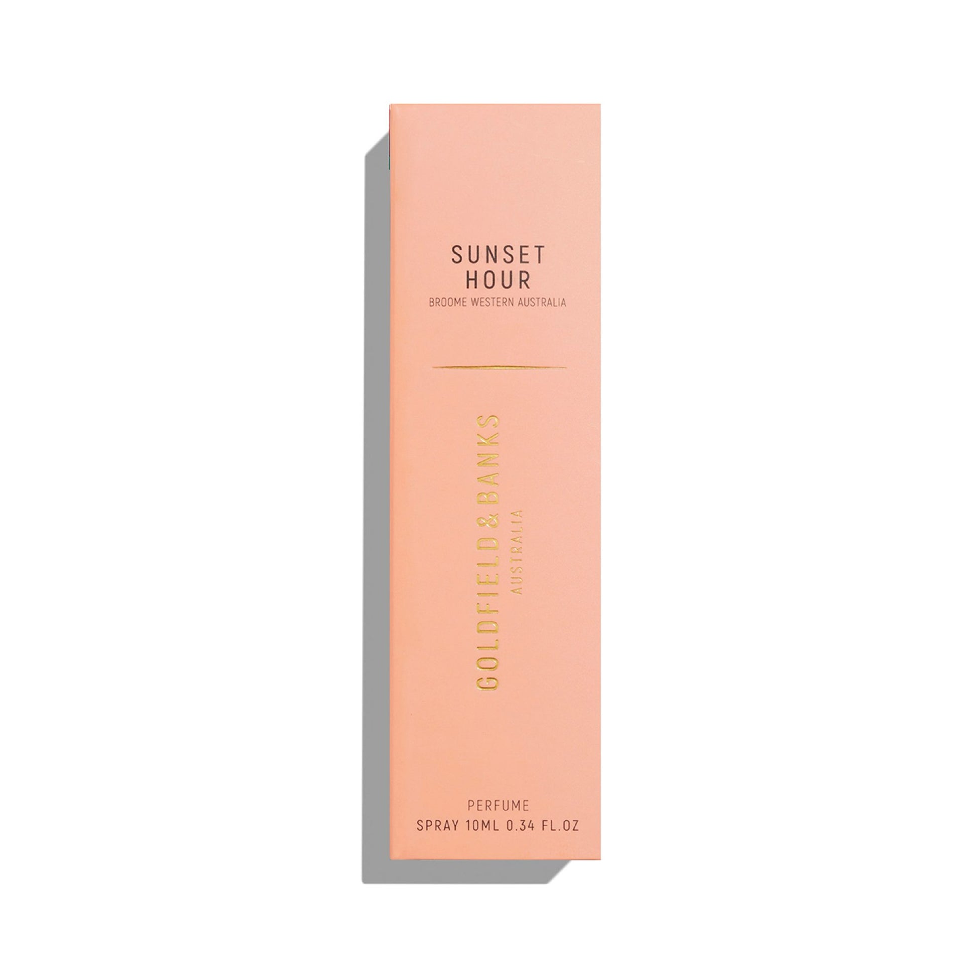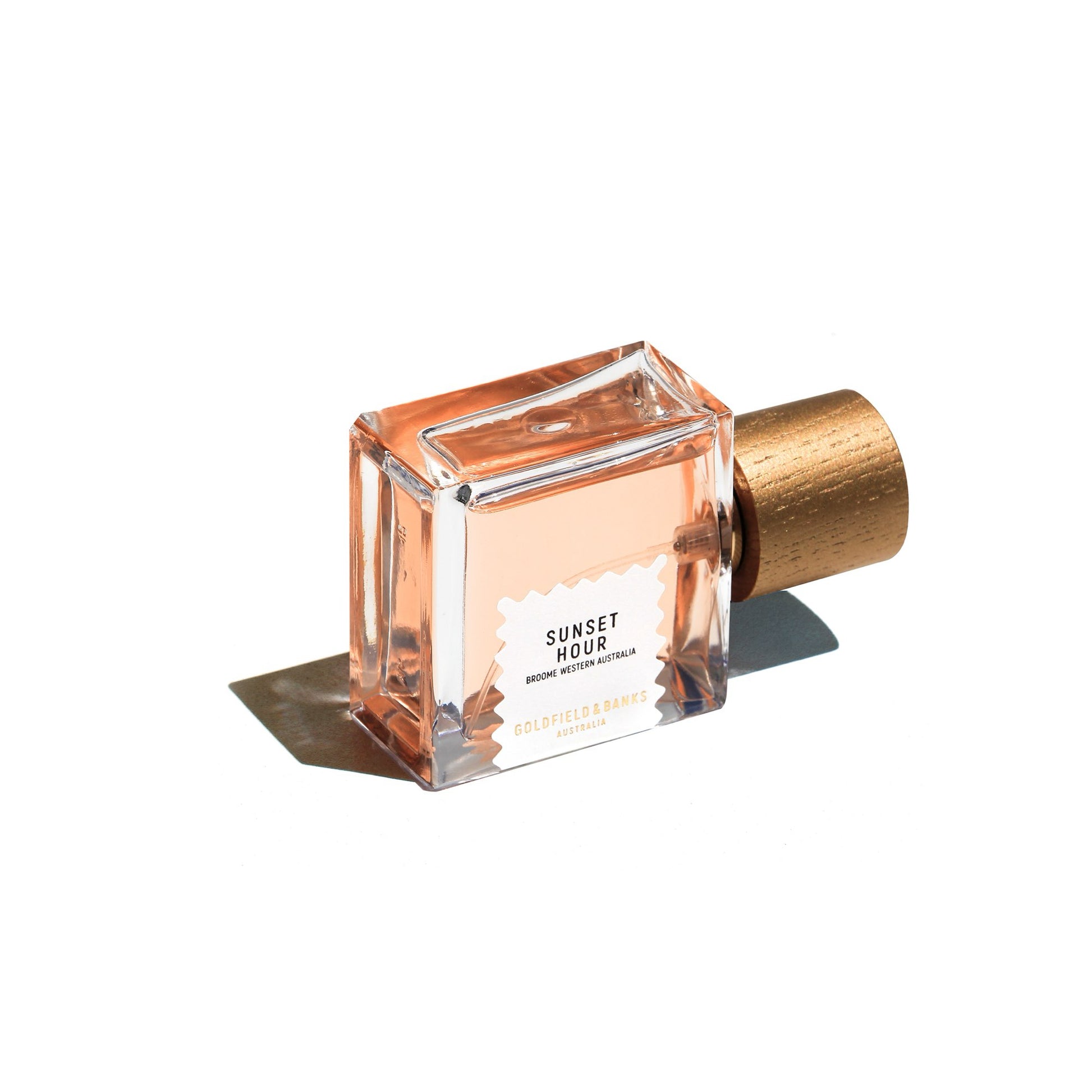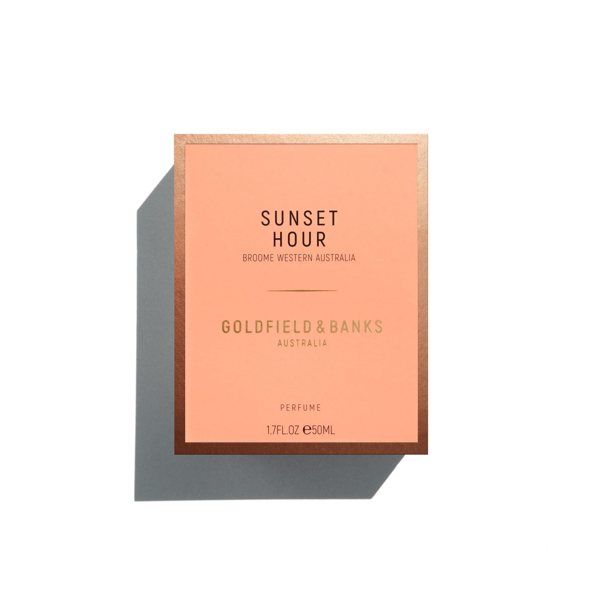 Let og legende, Sunset Hour åbner med en sprød akkord af pære, mandarin og ørkenfersken – en syrlig fersken- og rabarbernuance, der giver en tydelig saltagtig fornemmelse af solkysset hud. I hjertet serverer jasminens rige, hvide blomster sammen med grøn mango, ingefær og kokoscreme en tropisk eksotisme, hvor ørkenfersken træder frem. Rosa peber tilføjer skarphed til den syrlige smag fra denne centrale ingrediens. Samtidig giver det australske sandeltræ, der er tæt beslægtet med Quandong, en krydret-grøn-træagtig base, der fungerer som en platform for den frugtige dekadence fra kokosnød og ørkenfersken, som fortsætter ind i den luksuriøse base af musk og vanilje.