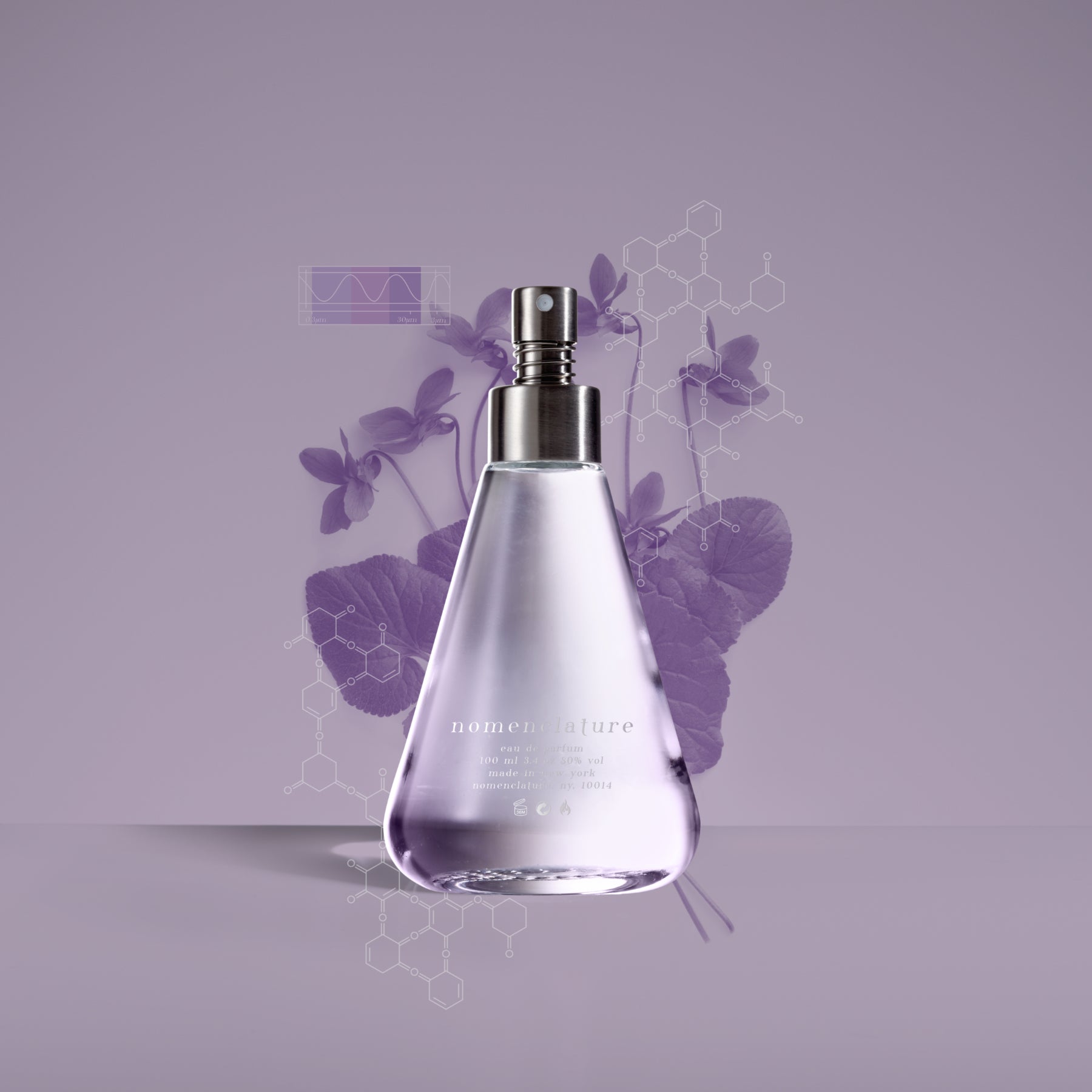 Dét at indfange duften af violer i et laboratorium var en af de første sejre indenfor duftkemi og lige siden har iononer været fundamental i parfumer. Violettyne ® er det 21. århundredes svar på deres vemodige, pudderagtige duft: en overnaturlig, lys violet med en metallisk vibration, kantet med en selvlysende grøn. Patenteret i 2000 af Firmenich, forandrer det banebrydende ’indfangede’ molekyle duft til lys med lumen_esce.