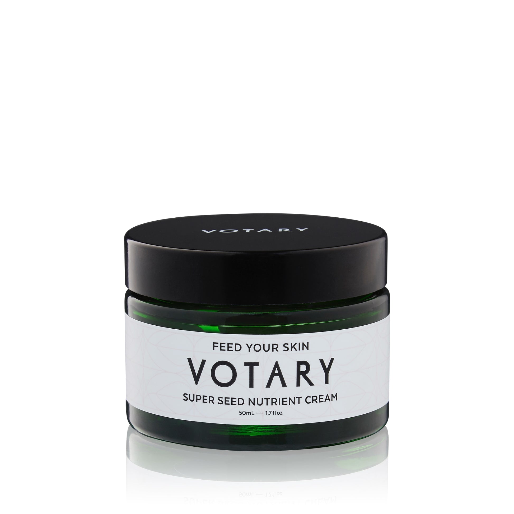VOTARY Super Seed Nutrient Cream er en parfumefri, beroligende og beskyttende creme til sensitiv hud, der føles tør eller rød. Den nærende formel efterlader huden rolig, blød og med en fin, mat finish.